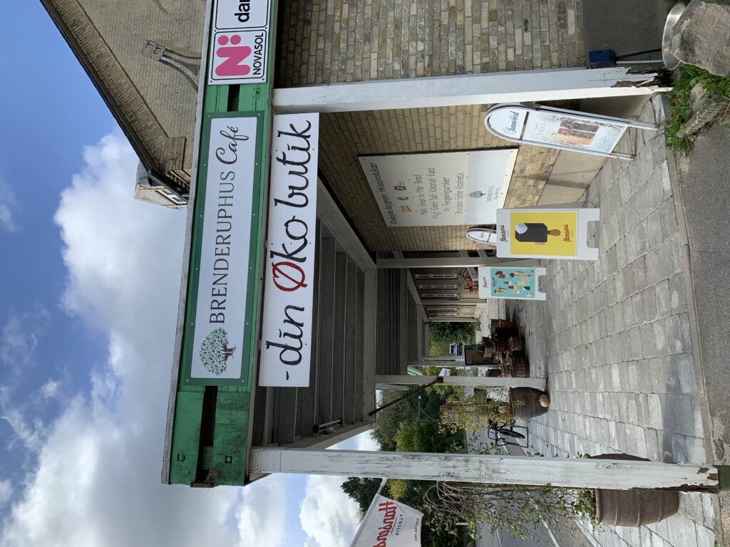 På landevejen mellem Bogense og Middelfart var der en lille landsby hvor se har en økologisk butik og cafe. Det er lige mig og vi vendte om så jeg kunne komme ind og kigge på alle de lækre sager. Prisen for 6 romkugler koster 63kr.