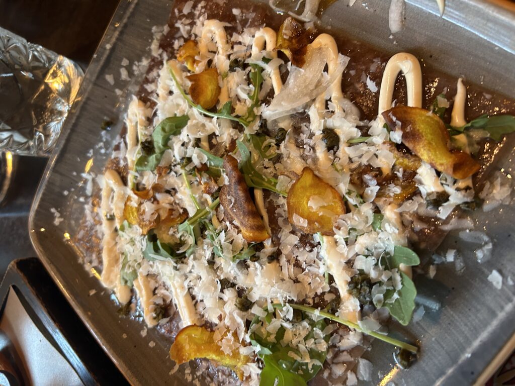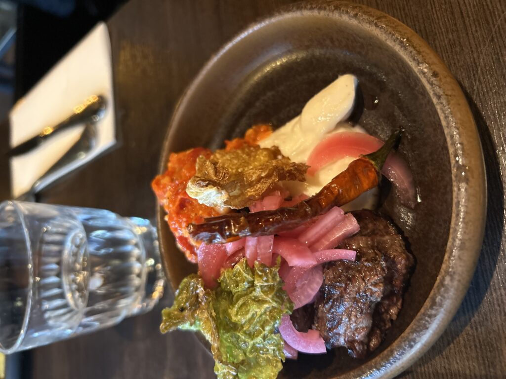 Den første aften spiste vi super lækker mad på Lacapito. Det lå inde i byen og vi fandt det ret tilfældigt. Det er en Tapasrestaurant i mega hyggelige omgivelser og superbetjening. Jeg fik superlækker-Tapas, tre forskellige retter og Mikael fik en super lækker bøf.
