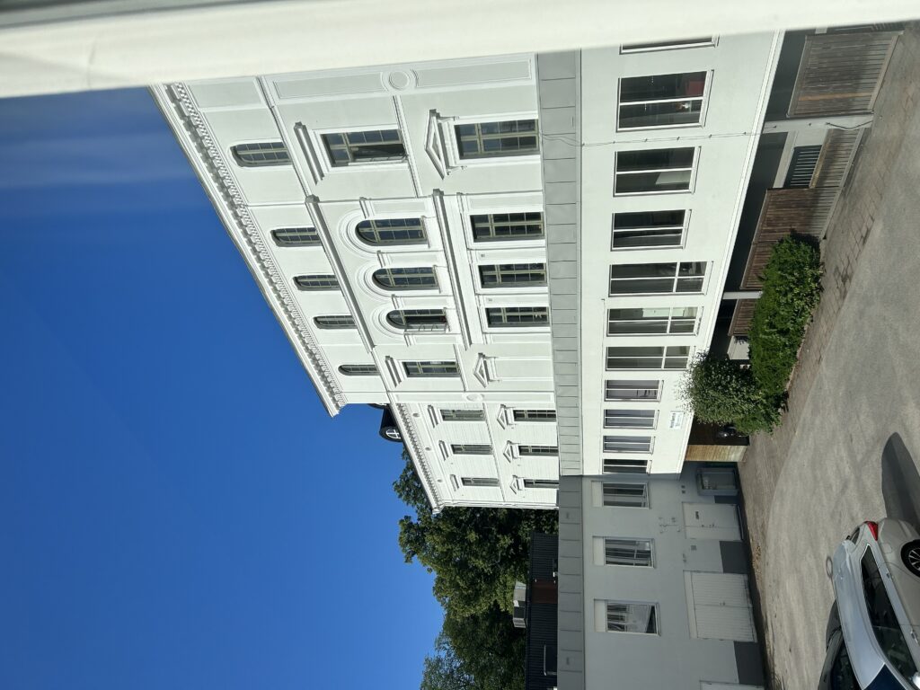 Jeg havde booket opholdet hjemmefra via hotels.com. Vi boede på hotel Solhem, det var billigt og vi gav kun 1300 kr. for to overnatninger inklusiv morgenmad. Værelserne var fine og store og med udgang til en lille terrasse, hotellet ligger i udkanten af byen. Der var fin parkering som kostede et beløb per nat.
