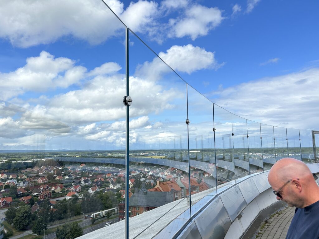 Da vi kørte fra Mariestad lagde vi vejen forbi Örebro. Vi ville en tur op i deres vandtårn- 58 meter oppe med udsigt over hele byen. På toppen findes en restaurant. Det er gratis at komme op.
